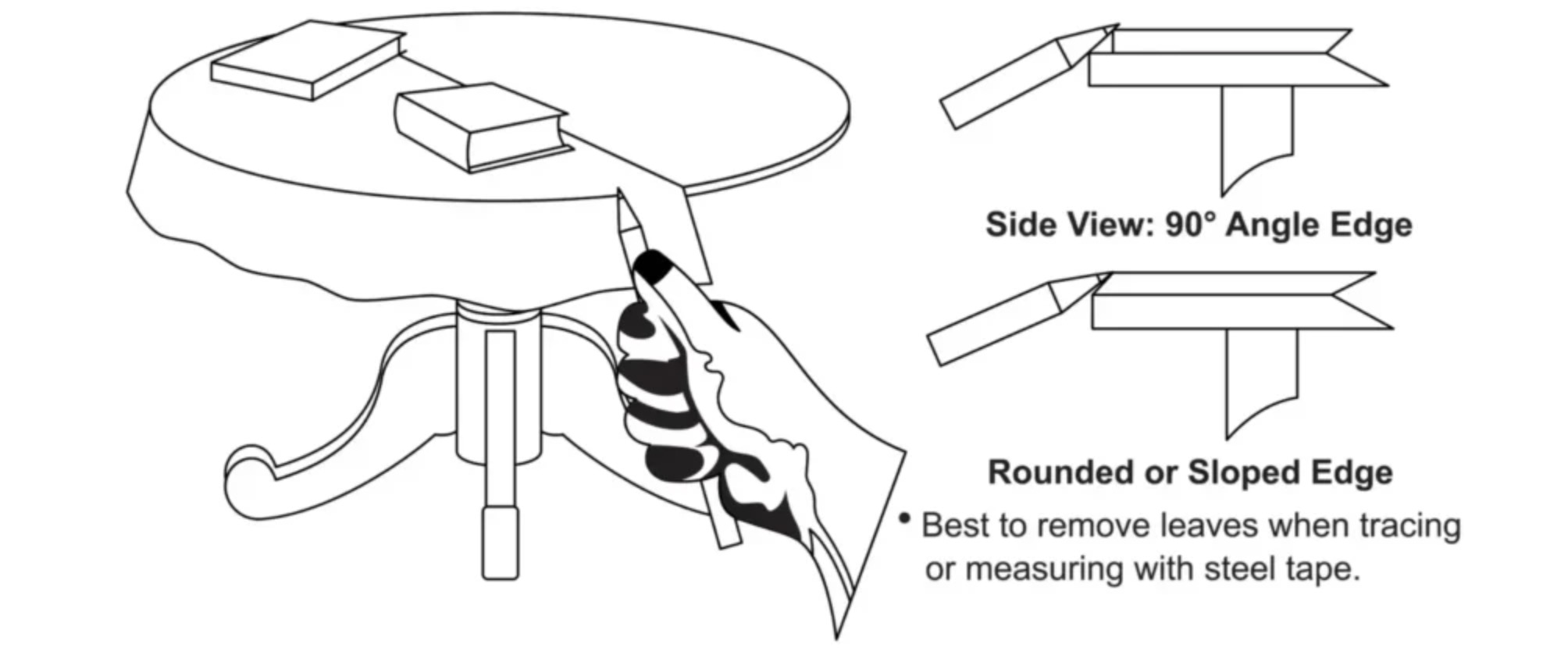 Trace edge of table by rubbing against the paper with side of pencil or crayon. Do not include molding or sloped edges.